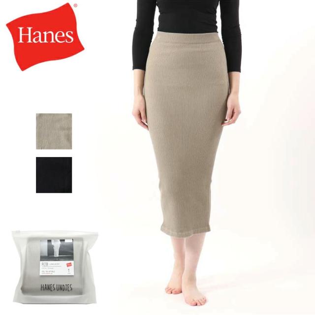 リブ ロングスカート Hanes ヘインズ UNDIES ウィメンズ [Lot/HW9-S502] スカート タイト 伸びる ラク 大人 ブラック ベージュ M フリーサイズ 無地 シンプル シンプル リラックス カジュアル ゴム 楽