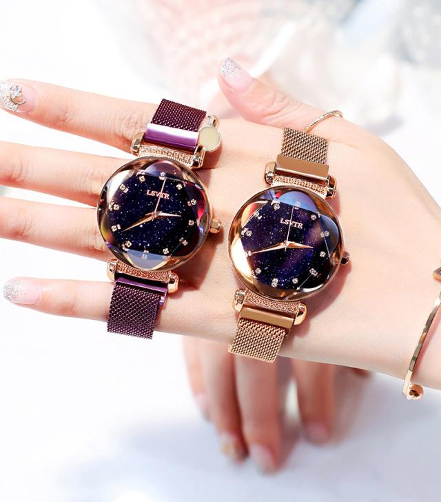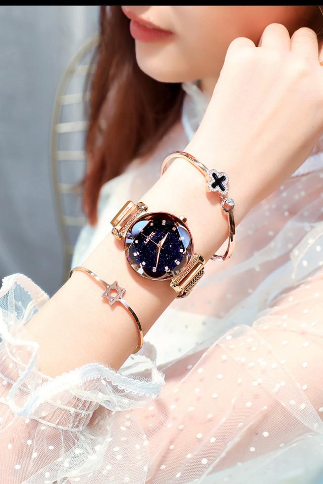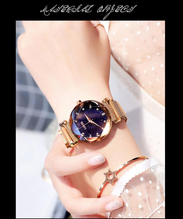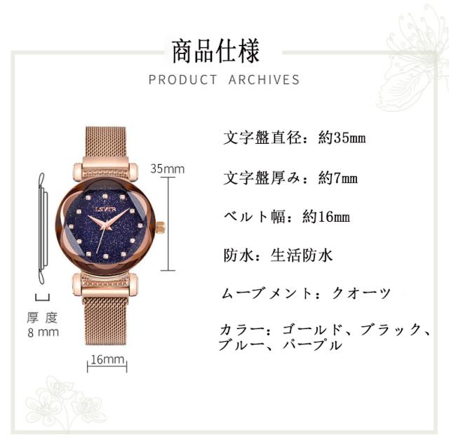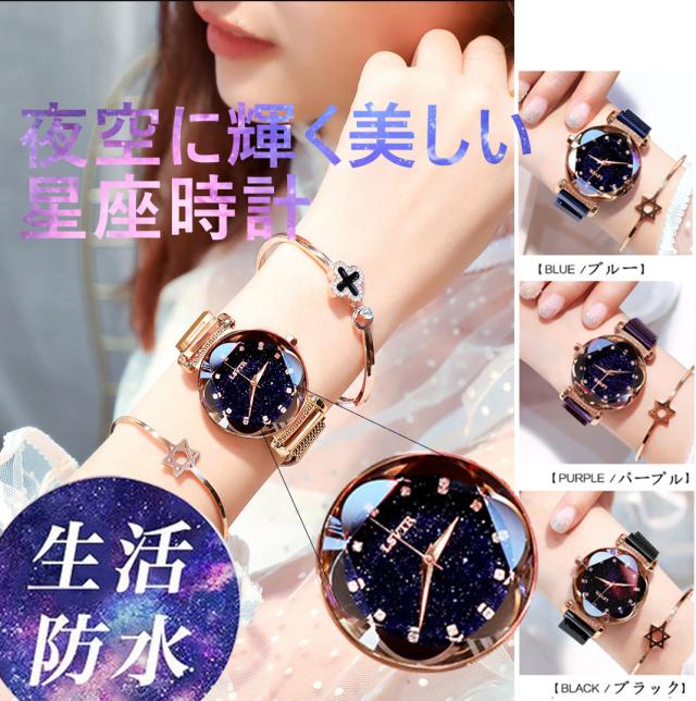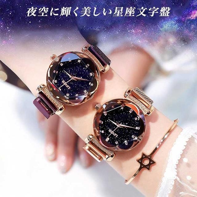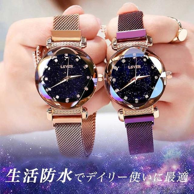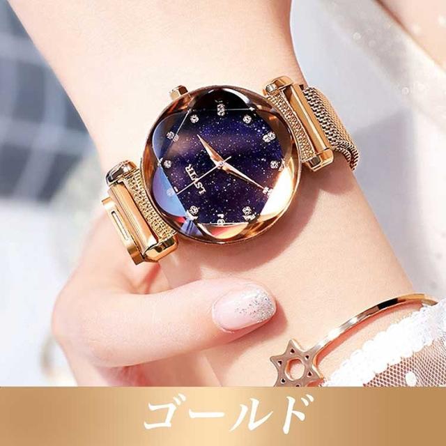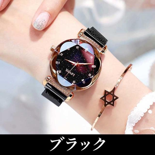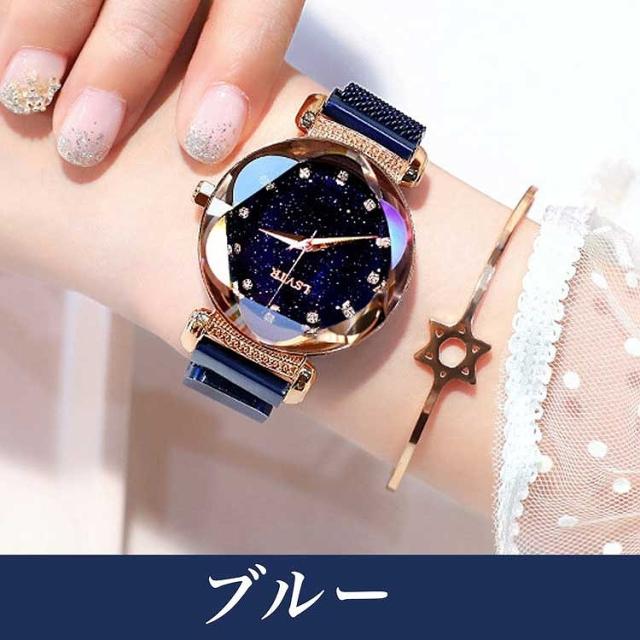 レディース 腕時計 キラキラ 流れ砂文字盤 ラインストーン アナログ かわいい おしゃれ 星空 時計 星 マグネットバンド アナログ カジュアル 星空ウォッチ