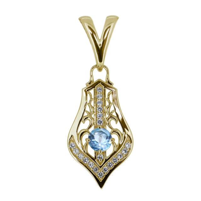 11月誕生石ブルートパーズを使用した18金製の、トライバル(唐草)デザインメンズペンダントヘッドです。