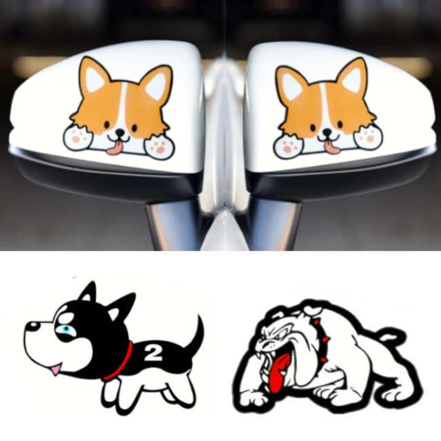 カーステッカー 左右 2枚セット 犬 コーギー ハスキー ブルドッグ ステッカー 車 シール 可愛い 犬 ドアミラー デコレーション 装飾 ペット アニマル ドッグ DOG