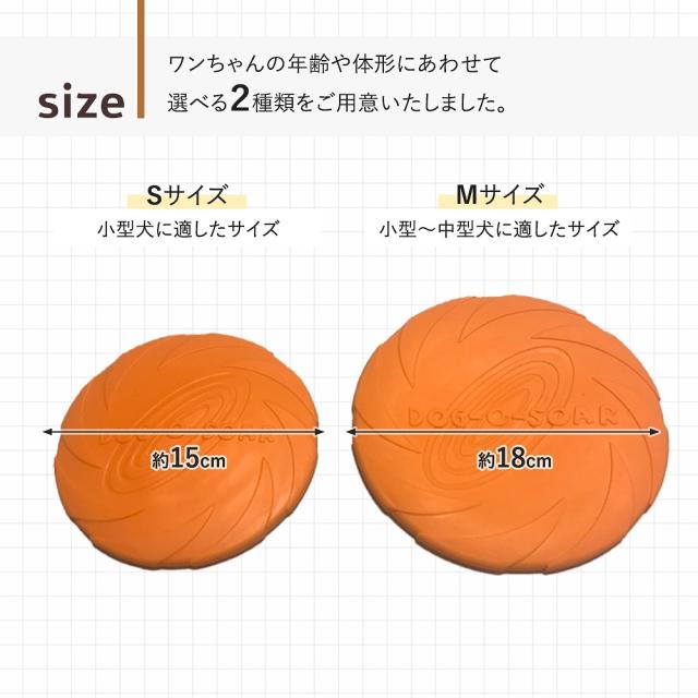- S size注文しました。1歳の小型犬なので遊びながらですが重すぎず取ってこれました。ドッグランなどで試しながら遊んでみたいと思います。