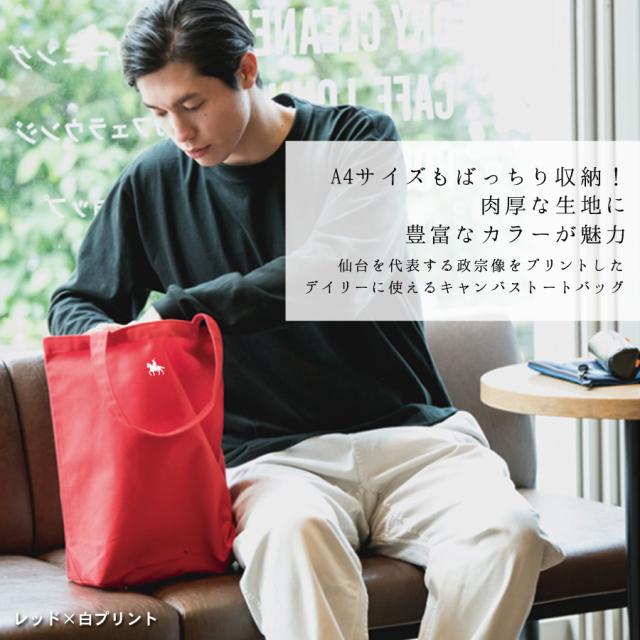 トートバッグ キャンバス 政宗 仙台藩 伊達政宗 騎馬像 A4 バッグ 縦長 縦型 エコバッグ 大きめ 大容量 軽量 手提げ ユニセックス レディース メンズ ワンポイント プリント 東北 ご当地 お土産 推し活 旅行 トラベル 送料無料 (toms0003)