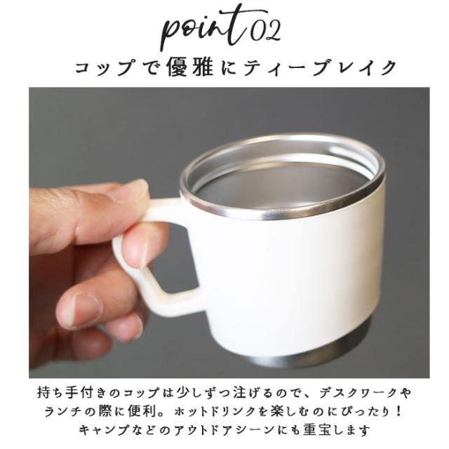| 保温効力 | 66度以上(6時間) ※保温効力とは、室温20度±2度において、製品に沸騰水を中栓の下端まで満たし、縦置きにした状態で湯温が95度±1度の時から6時間放置した場合におけるその湯の温度です。 |
