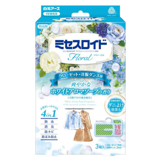 白元 ミセスロイドフローラル クローゼット・洋服ダンス用3個1年ホワイトアロマソープ ミセスロイド