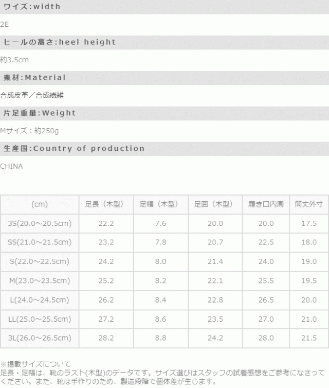 ※掲載サイズは、靴のラスト(木型)のデータです。