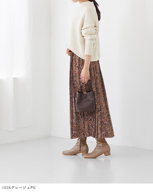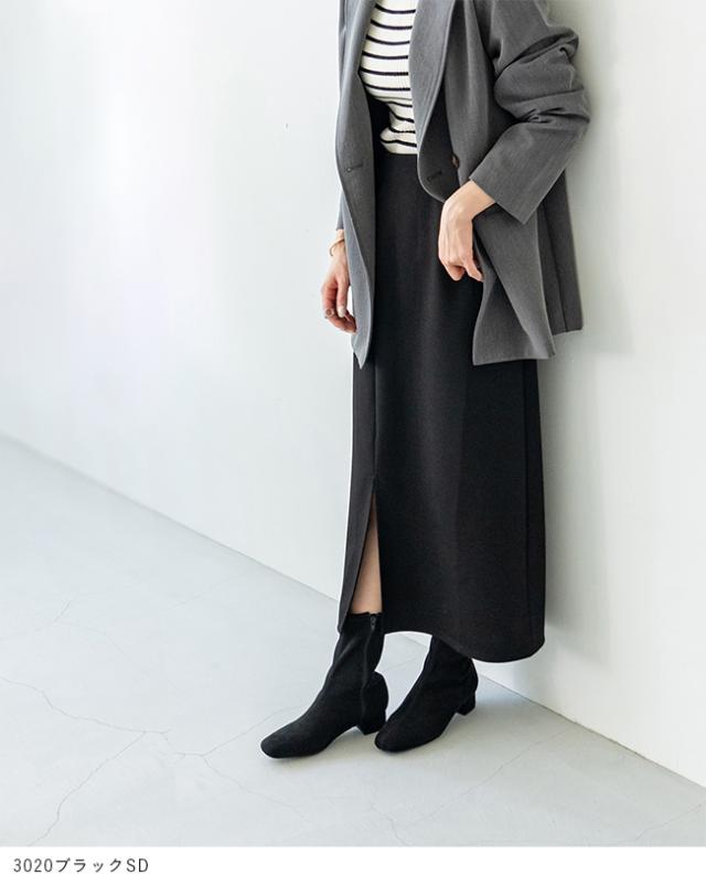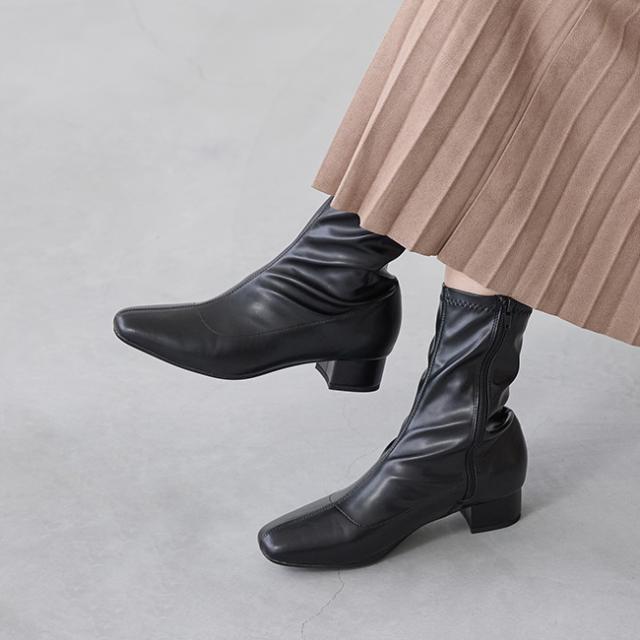 今シーズンも人気の高いスクエアトゥのストレッチブーツは細く美しいフォルムが特徴。