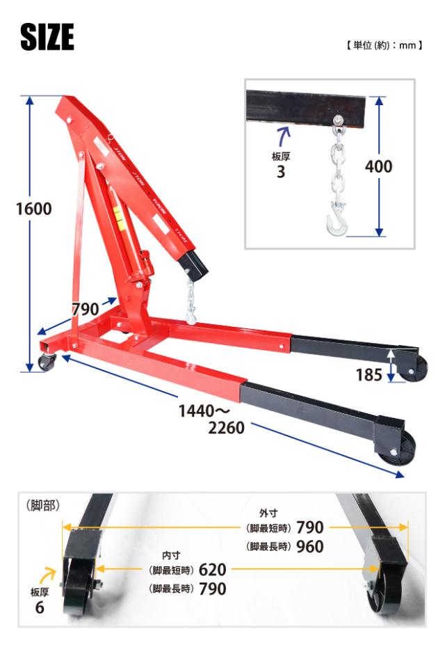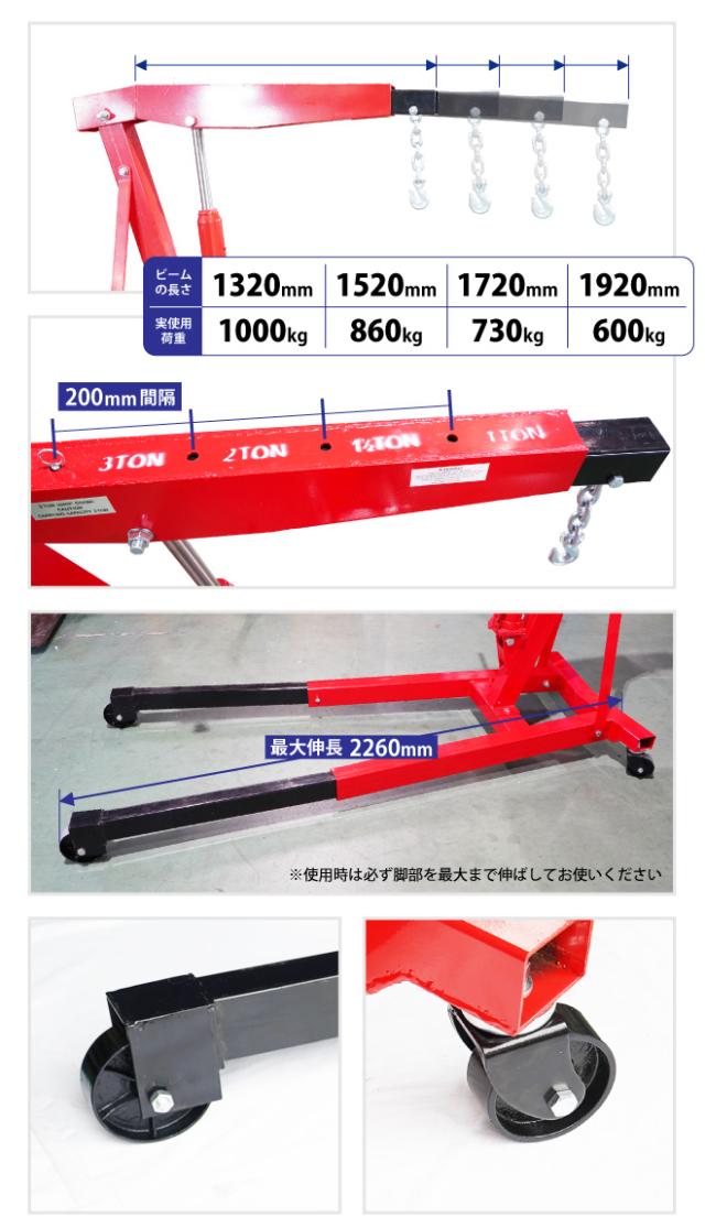 エンジンクレーン 3トン 大型 ヘビーデューティ マルチクレーン ショップクレーン 6ヶ月保証 KIKAIYA