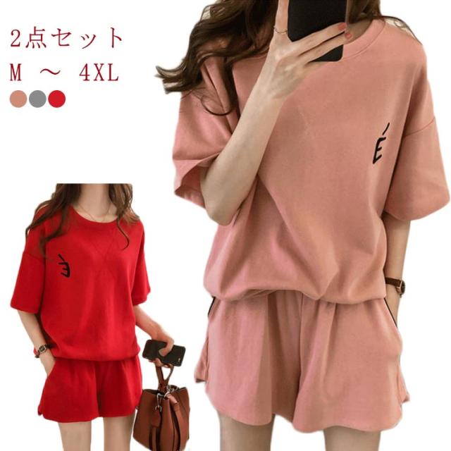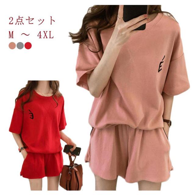 部屋着 セットアップ レディース スウェット 上下セット 2点セット ルームウエア スウェットtシャツ ショートパンツ パジャマ 外出ウエア おしゃれ 大きいサイズ