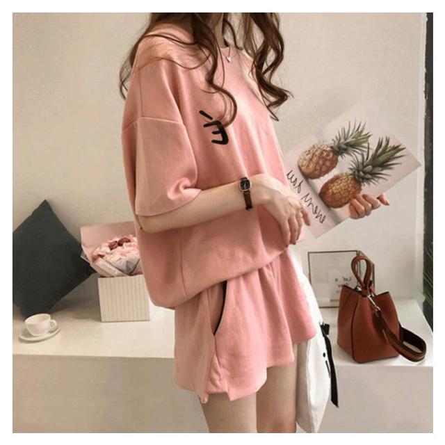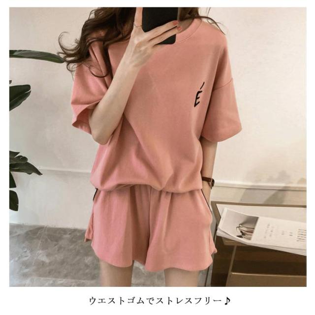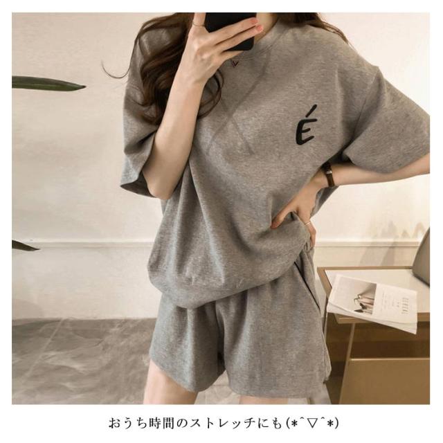| シンプル*カジュアル可愛いこなれセットアップです。 薄手の生地は動きやすく速乾性もあるから おうち時間のストレッチにもウエストゴムでストレスフリー | |