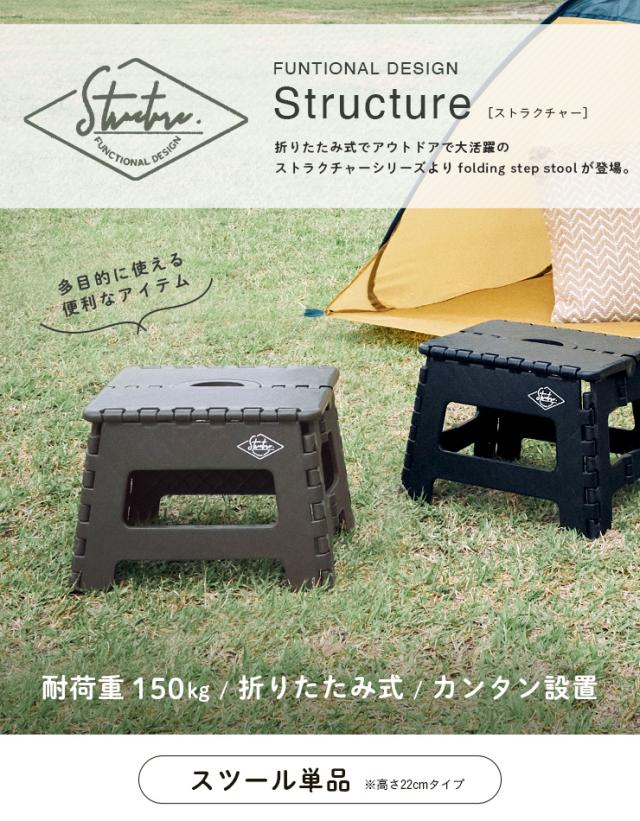 【耐荷重150kg】折りたたみ アウトドア チェア Structure Folding Stool(フォールディングスツール) H22cm 3色対応 スツール 脚立 踏台 踏み台 ステップ イス 椅子 ステップ台 腰掛け椅子 折り畳みチェア おしゃれ