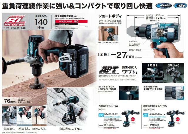 (マキタ) 充電式ドライバドリル DF486DZ 本体のみ 鉄工13mm・木工50mm 18V対応 makita