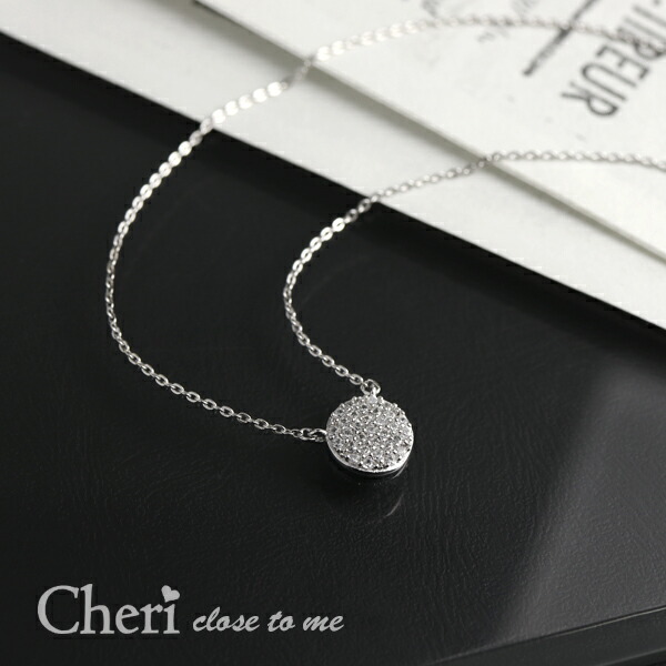 Cheri 刻印無料 パヴェ ラウンド シルバーネックレス シルバー925 ジルコニア サークル 丸型 華奢 小さめ ネックレス ペンダント さりげない ブランド