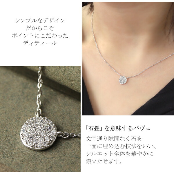 シルバーアクセサリー シルバーアクセ シルバーネックレス レディースジュエリー レディースネックレス レディースペンダント シルバー925 ロジウムコーティング 丸 サークル ラウンド パヴェ クール かっこいい 格好良い フェミニン ガーリー