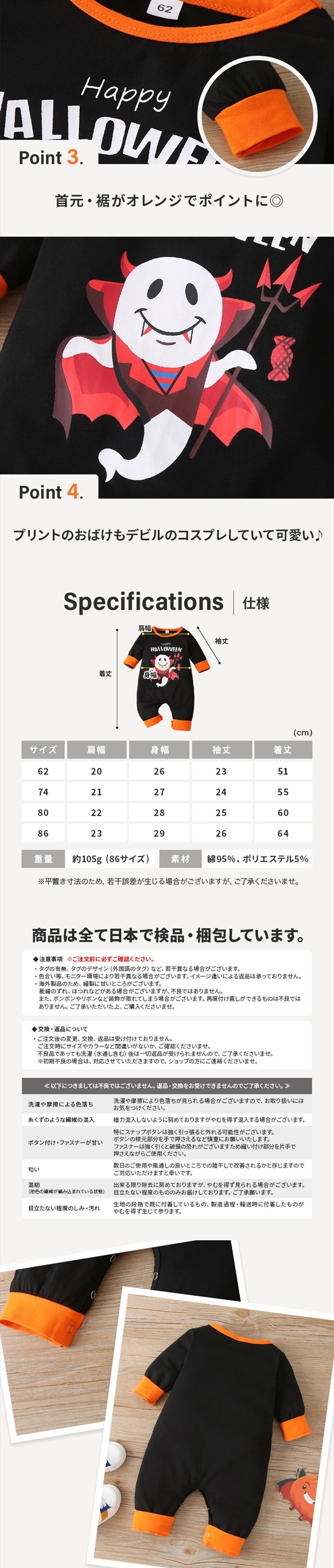 レビューでおまけ付 ハロウィン コスプレ 子供 コスチューム カバオール おばけ 仮装 衣装 男の子 女の子 ベビー キッズ 子ども カバーオール 悪魔 デビル ゴースト かわいい お揃い 可愛い パーティ 62 74 80 86 ポイント消化 送料無料 新作 ギフト 春