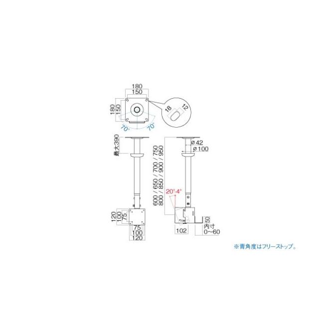 | 備考 | 取付ピッチ 75×75mm 100×100mm 上下調節:50mmピッチ 8段階 角度調節:前方20度、後方4度、左右各70度(任意調節可能) スラブ面からテレビ画面センターまで、600 / 650 / 700 / 750 / 800 / 850 / 900 / 950mmの上下調節可能 化粧カバーはスラブ面から天井面まで最大390mmまで対応 ※取付けに際しての注意事項 スラブの剛性を十分に考慮の上、取付け位置を決めてください スラブへの取付用ネジは同梱されていません スラブへの取付けは取付工事専門業者にご依頼ください ※テレビ背面形状や端子位置によって、一部取付けできない機種があります。 ※取り付けるテレビの対応状況をWebサイト「テレビ取付対応検索」にて事前にご確認ください。 |