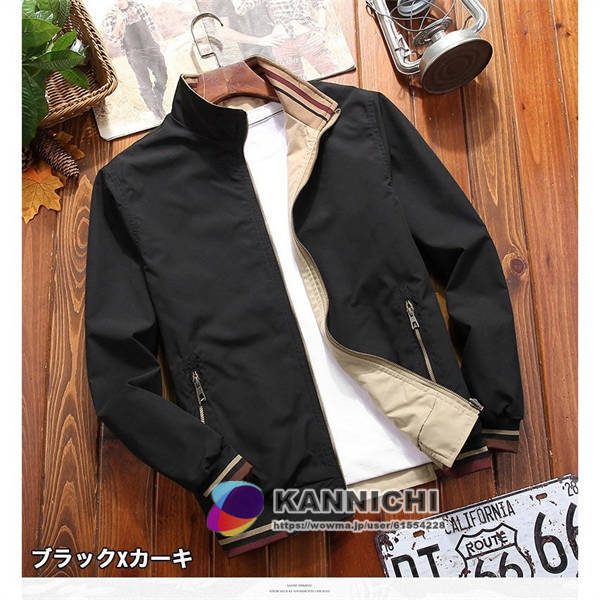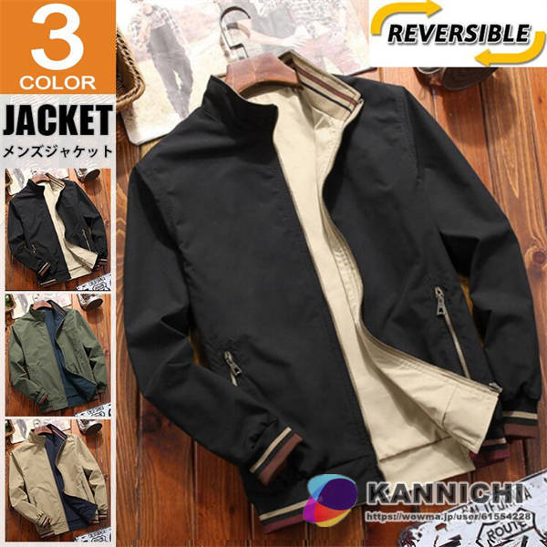 ブルゾン メンズ 秋服 スイングトップ ライトアウター ジャケット 両面着 リバーシブル スタンドカラー 春服