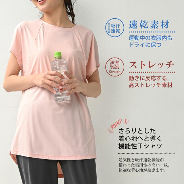 大きいサイズ レディース スポーツTシャツ 運動着 半袖トップス ラグランTシャツ 軽量 ハーフスリーブ 熱がこもりにくい 蒸れにくい 快適 吸汗速乾 吸湿 お尻が隠れる丈 お尻すっぽり丈 チュニック丈 ヨガウェア ピラティス ダンス ストレッチ素材 フィットネスウェア ランニングウェア おしゃれ 大人 アウトドア スポーティ 涼しげ 清涼感 体型カバー お尻カバー 30代 40代 50代 春 夏 秋 黒 灰色 桃色 L LL 3L 4L 5L XXXXL 2XL 3XL 4XL 13号 15号 17号 19号 sp-ssa-tp2004 トレーニングウェア