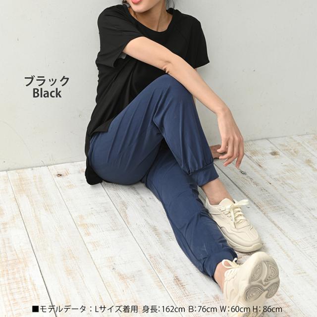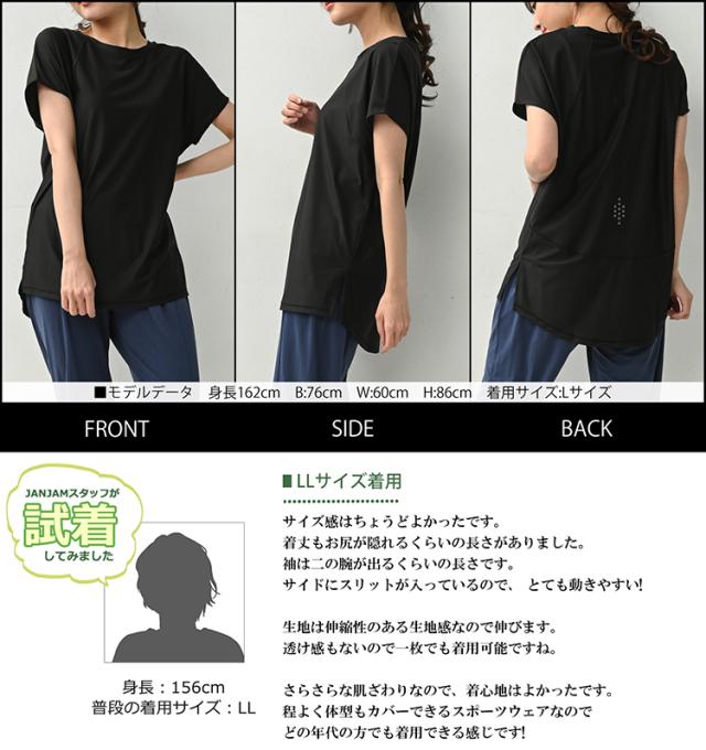 【メール便対応】少し長めに設計された着丈で体型カバー!サイドスリット入りフィットネスTシャツ。