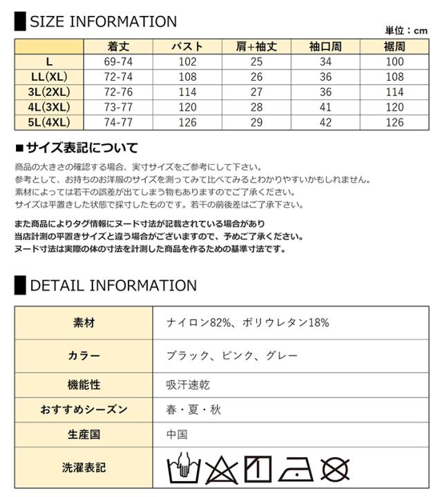5L(4XL):着丈74-77 バスト126 肩+袖丈29 袖口周42 裾周126