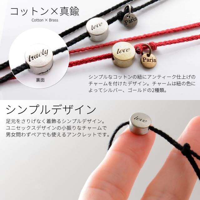 アンクレット つけっぱなし メンズ レディース ペア おそろい 大人 カップル ブランド 細い 細め コットン コード 紐 チャーム 真鍮 重ね付け おしゃれ かわいい 人気 シンプル アクセサリー ミサンガ サイズ調整 プレゼント ギフト