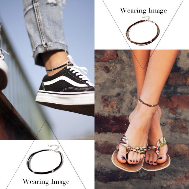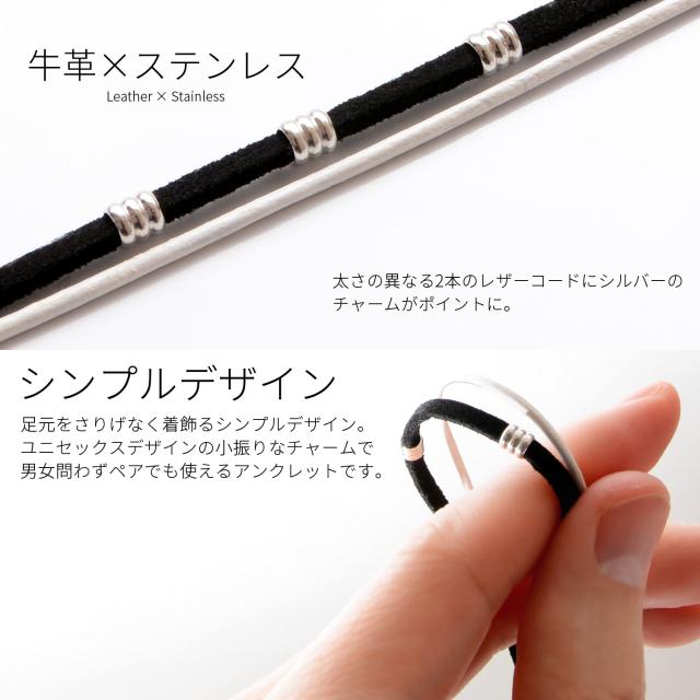 アンクレット つけっぱなし メンズ レディース ペア おそろい 大人 カップル ブランド レザー 本革 牛革 革紐 革ひも 紐 細い 細め 2連 二連 ステンレス 重ね付け おしゃれ かわいい 人気 シンプル アクセサリー ミサンガ サイズ調整 プレゼント ギフト
