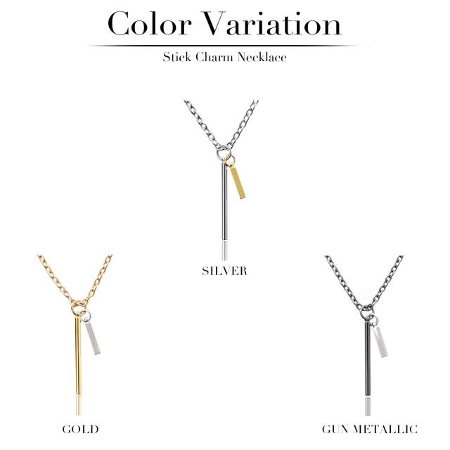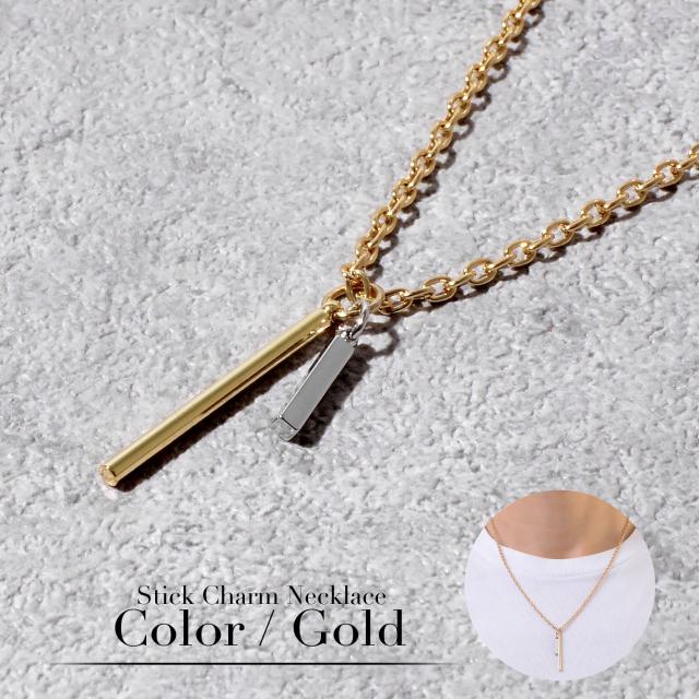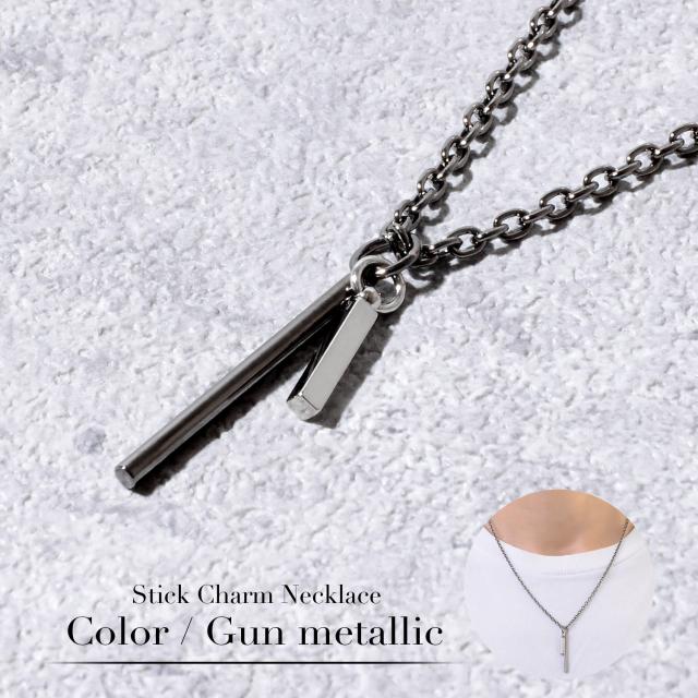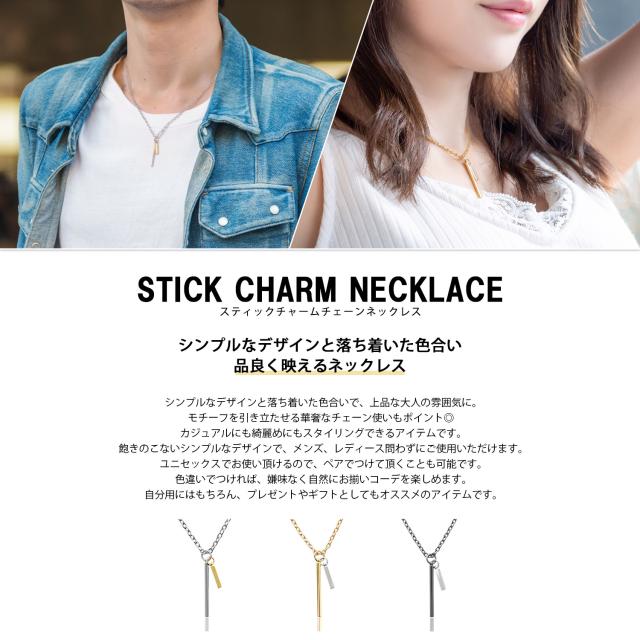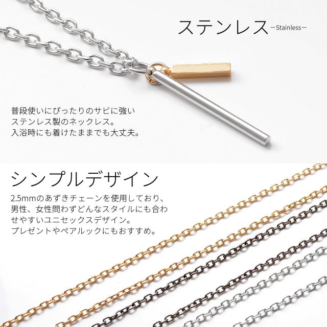 ネックレス メンズ シンプル シルバー ゴールド チェーン スティック チャーム つけっぱなし ステンレス アレルギー対応 レディース カジュアル 大人 高校生 おしゃれ かわいい かっこいい 小豆 あずき ガンメタ 金 黒 長い 長め 細い 細め プレゼント ギフト