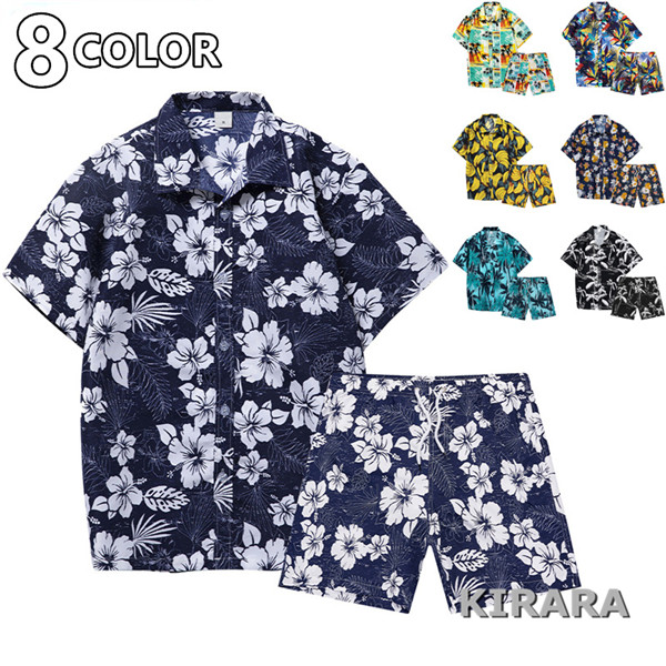 セットアップ アロハシャツ メンズ 花柄 薄手 涼しい 通気 速乾 ビーチシャツ 半袖 ゆったり ショートパンツ お兄系 ハーフパンツ 夏物 カジュアル 総柄 おしゃれ 夏新作 ハワイシャツ 上下2点セット