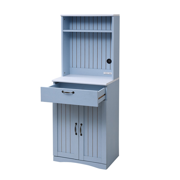 JKプラン 食器棚 キッチンボード カップボード フレンチカントリー 幅60.5 奥行42.5 高さ160.5 ンセント付き 引き出し 付き 扉付き収納 棚 キッチン収納 FFC-0006-BL ブルー