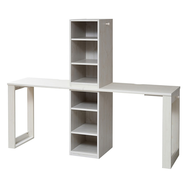 ■兄弟・親子で並んで使えるコンパクトでシンプルなツインデスク。ラックの位置が変えられ、お部屋に合わせて2つのデスクをくっつなけたり離したりと様々なコーディネートが楽しめます。