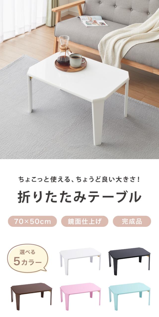 折りたたみ テーブル 鏡面 70×50cm 【5色から選べる】北欧 折りたたみテーブル 完成品 鏡面仕上げ ローテーブル おしゃれ(代引不可)【送料無料】