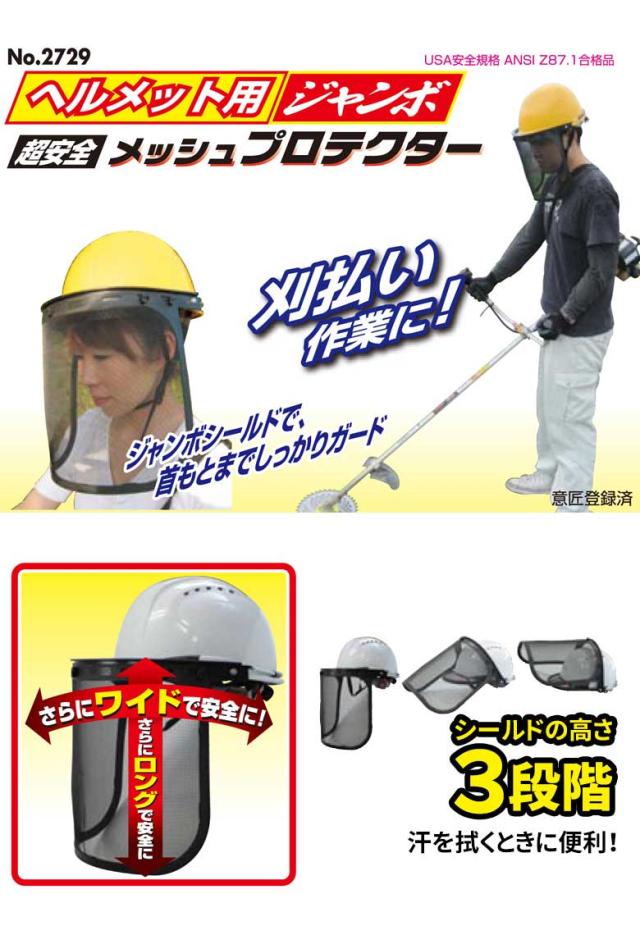 ヘルメット取付用 ジャンボプロテクター メッシュ No.2729 ワンダー フェイスガード フェイスシールド 顔面保護 安全・保護用品 保護マスク ガーデニング 剪定 刈込作業 園芸作業 草刈り 刈り払い ヒマサ金物