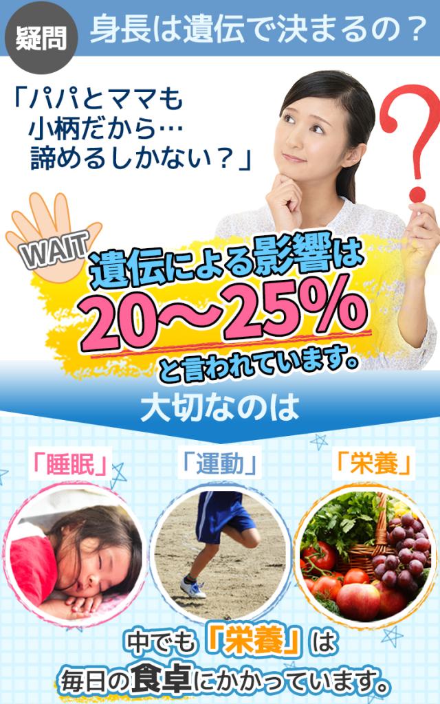 - 息子の身長が同級生に比べて低いため、少しでも何かの足しになればと思い。補助的な栄養補給として、夕飯後に与えています。効果はまだ分かりませんが、続けてみようかと思います。