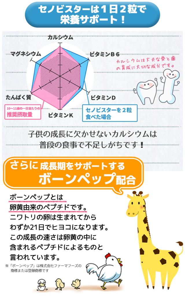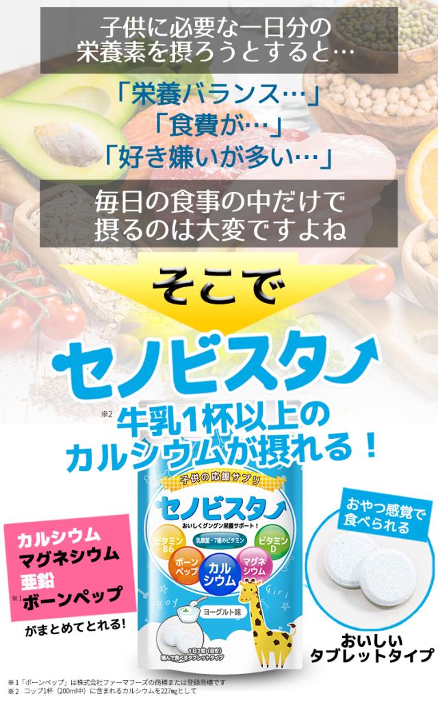 セノビスターは子供の成長期・小食・偏食・部活動に栄養バランスを考えた子供サプリです。