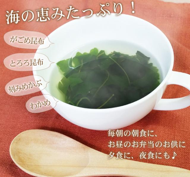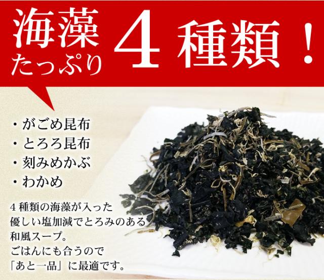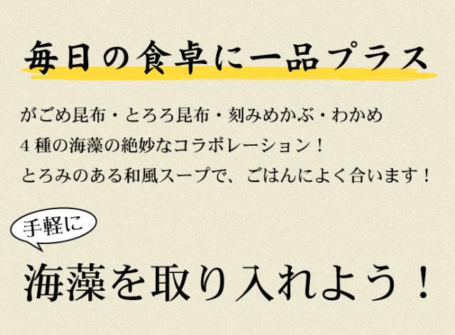 - たくさんの海藻が入っているので、満腹感あり。 アレンジも効くから、色々と楽しめる。 腸活にいいスープでもあるので、リピーターです。