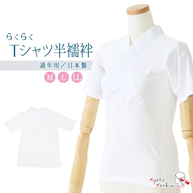 【2枚までメール便発送OK】Tシャツ 半襦袢 半衿付き 洗える レディース 女性 肌着 肌襦袢 着付け インナー 筒袖 綿 コットン 白 着物 和装 お洒落 浴衣 小紋 紬 仕事 稽古 M L LL