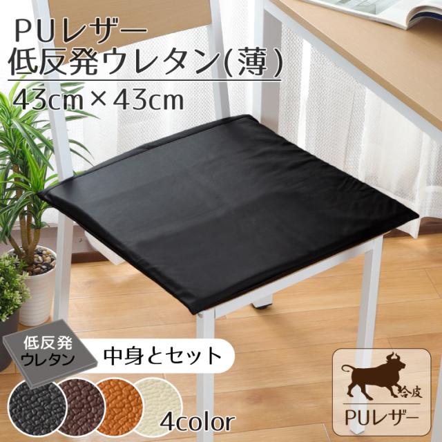 クッション レザー調 フェイクレザー 撥水 低反発ウレタン 約43×43cm ブラック ブラウン キャメル アイボリー PUレザー 背当て 合皮 合成皮革 飲食店や業務用 低反発ウレタン(薄)