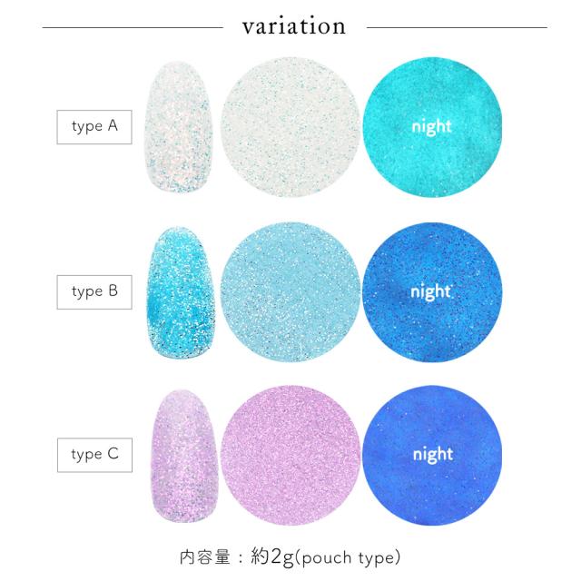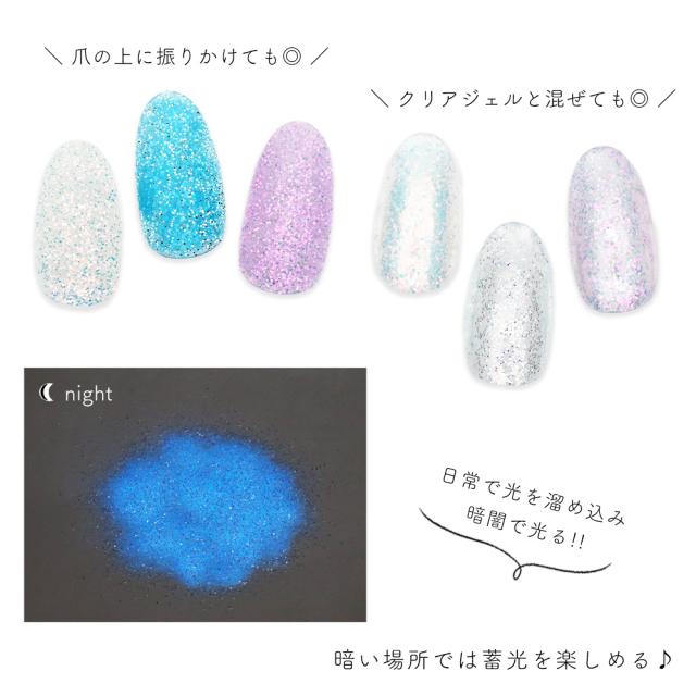 ネイルアート 蓄光ラメパウダー 全3色 約2g入り