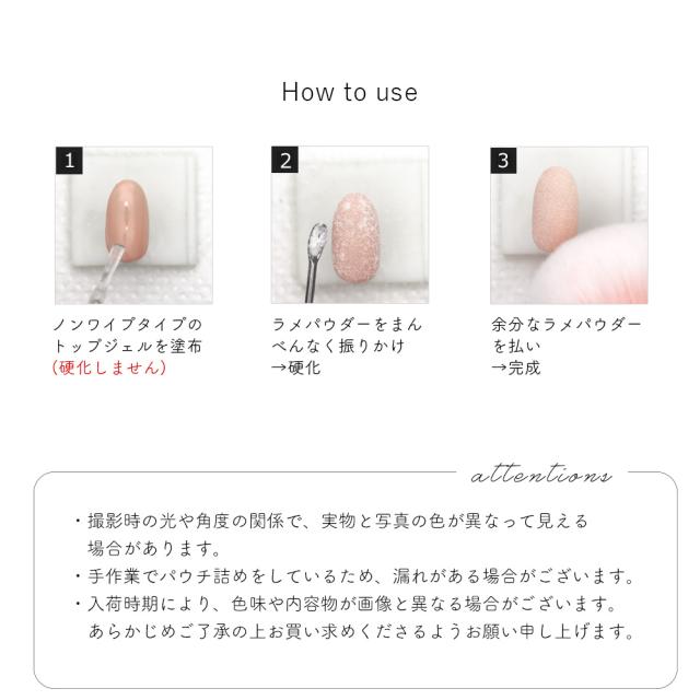 3.ダストブラシなどで余分なラメパウダーを払い完成♪