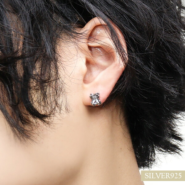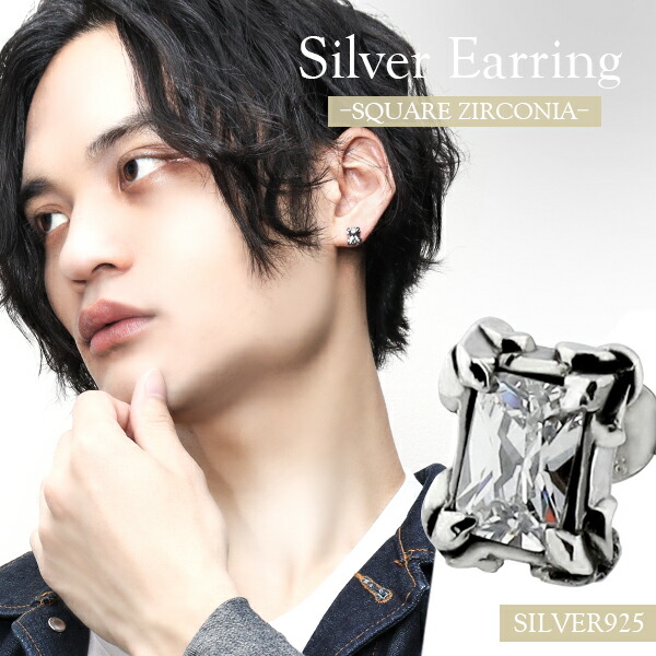 スクエア キュービックジルコニア シルバーピアス 1P 片耳用 925 スタッド メンズ ピアス 男性用 メンズピアス 男性用ピアス プレゼント 人気