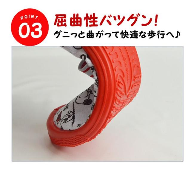大人気のキャラクター【スヌーピー】の上履きが登場。軽量で屈曲性のある設計なので疲れにくく足の負担を軽減してくれます。アッパーは総柄で目立つデザインで、学校に行くのも楽しくなってくるオススメの上履きです。