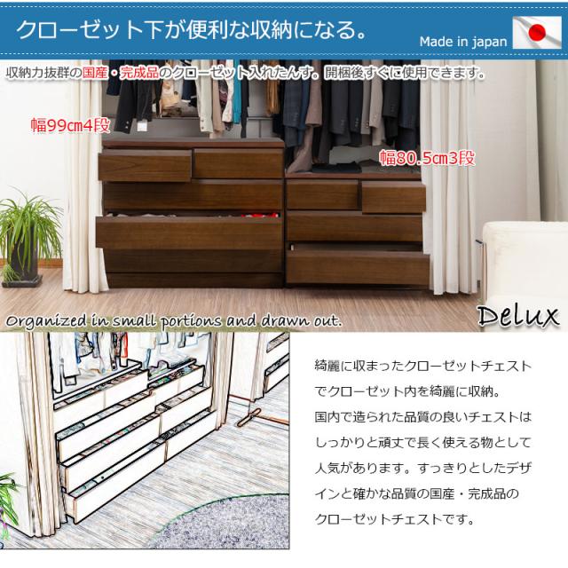 \ポイント消化!/ 【DELUX】シリーズ 天然木桐材のクローゼット 幅99 奥行40 4段 ブラウン色 日本製 国産 完成品 タンス 木製