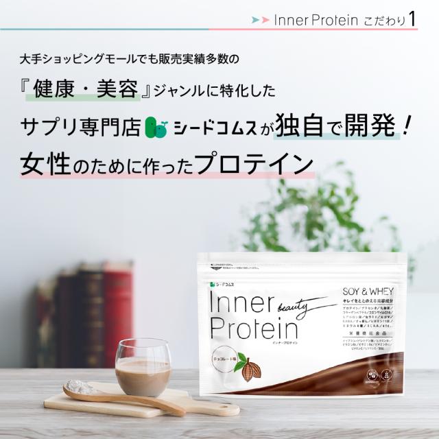 ※終売しました※インナープロテイン 1袋350g チョコ味 人工甘味料不使用 国内生産 ホエイ ソイプロテインW配合 女性用 美容 ダイエット成分 高タンパク低糖質