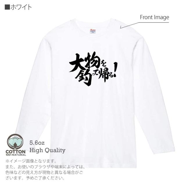 釣り Tシャツ 長袖 釣りざんまい 大物を釣って帰る! 横書き 5.6oz (オンス) 綿100% メンズ レディース 洗濯 大きいサイズ ホワイト ブラック グレー ピンク 白 黒 灰色 桃色 ロンティー 春 夏 秋 冬 オシャレ 釣り 魚 ルアー