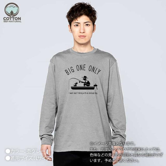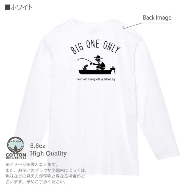 釣り Tシャツ 長袖 釣りざんまい 愛犬とボートフィッシング 5.6oz (オンス) 綿100% メンズ レディース 洗濯 大きいサイズ ホワイト ブラック グレー ピンク 白 黒 灰色 桃色 ロンティー 春 夏 秋 冬 オシャレ 釣り 魚 ルアー