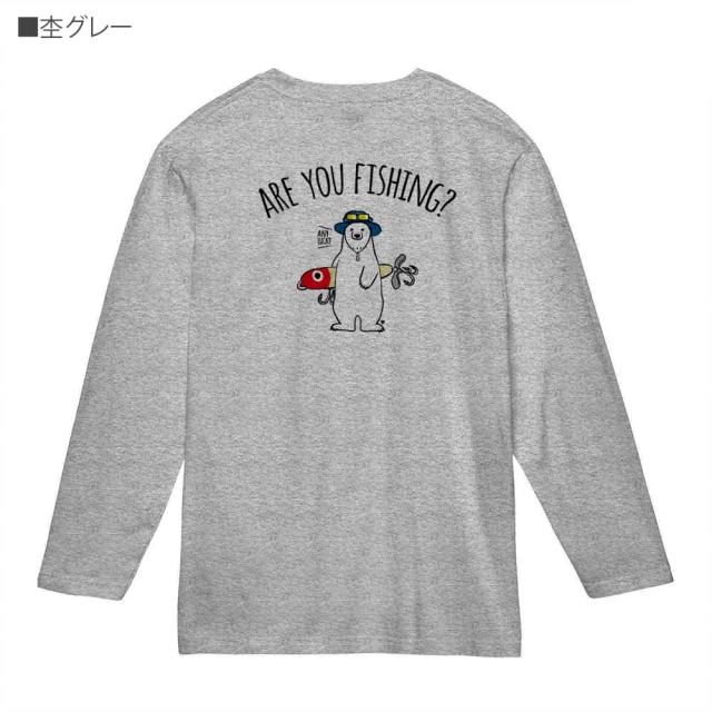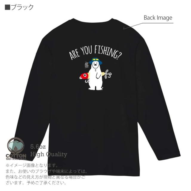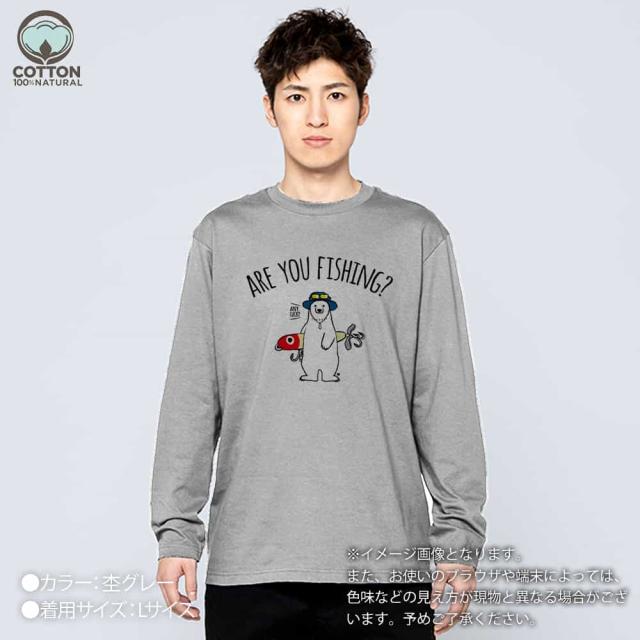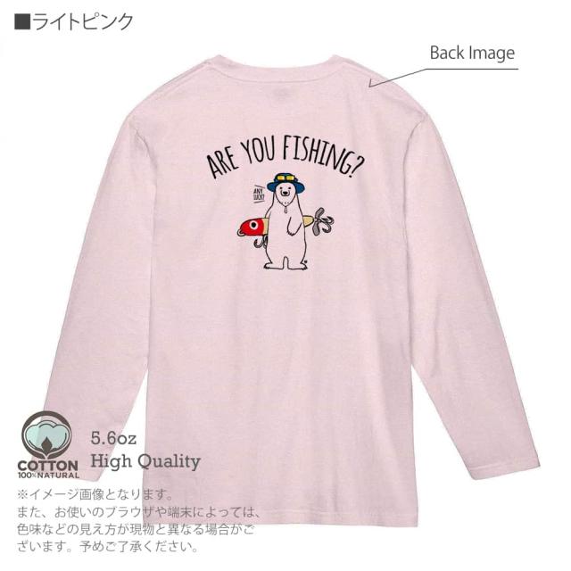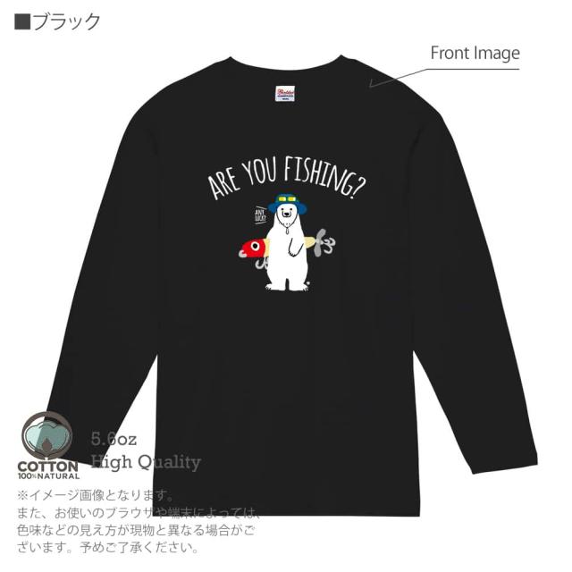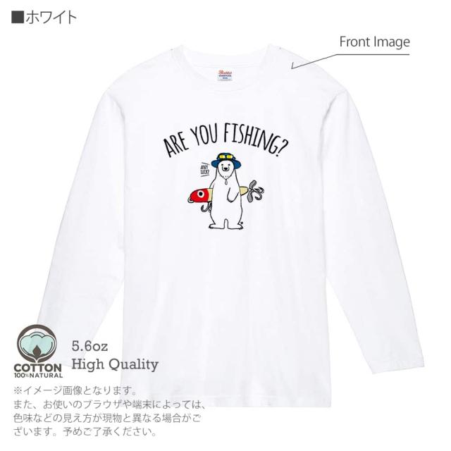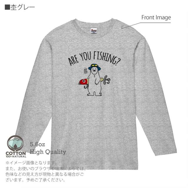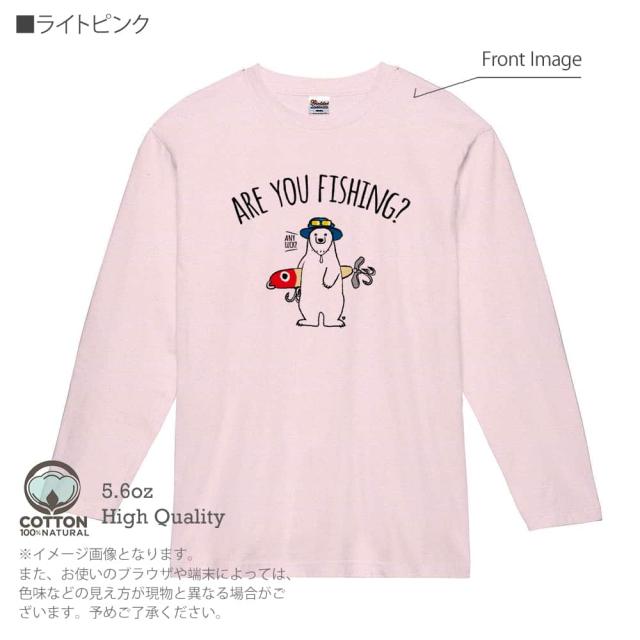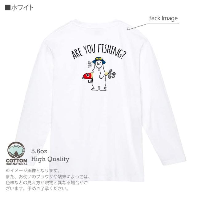 釣り Tシャツ 長袖 釣りざんまい ルアーとシロクマさん 5.6oz (オンス) 綿100% メンズ レディース 洗濯 大きいサイズ ホワイト ブラック グレー ピンク 白 黒 灰色 桃色 ロンティー 春 夏 秋 冬 オシャレ 釣り 魚 ルアー