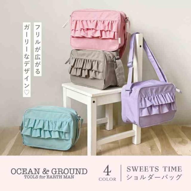 通園バッグ ショルダー 女の子 OCEAN&GROUND オーシャンアンドグラウンド SWEETS TIME スイーツ タイム フリル ショルダーバッグ 4645004 キッズ 子供 おしゃれ かわいい 軽量 軽い 丈夫 保育園 幼稚園 小学生 通園 通学 入学 入園 準備 ピンク パープル ミント ベージュ