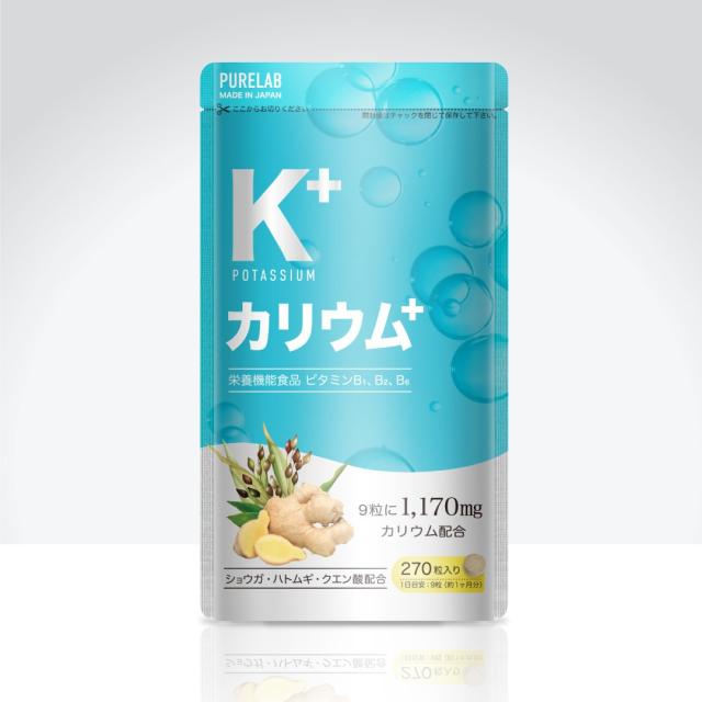 カリウム レスベラトロール サプリメント 塩化カリウム1,170mg 栄養機能食品ビタミンB1 B2 B6 ポリフェノール クエン酸 生姜 日本製 1袋 270粒 約30日分 PURELAB 送料無料 ギフト プレゼント