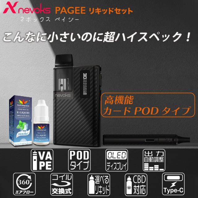 VAPE POD Nevoks Pagee 電子タバコ ベイプスターターキット ネボックス ペイジー ネヴォックス POD タイプ 本体 持ち運び シーシャ おすすめ コンパクト スリム 小型 タール ニコチン0 禁煙