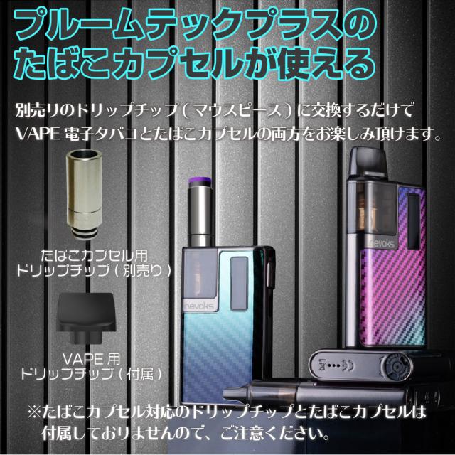 ドリップチップ(マウスピース)を交換するだけでVAPE ( ベイプ ) 電子タバコとたばこカプセルの両方をお楽しみ頂けます。