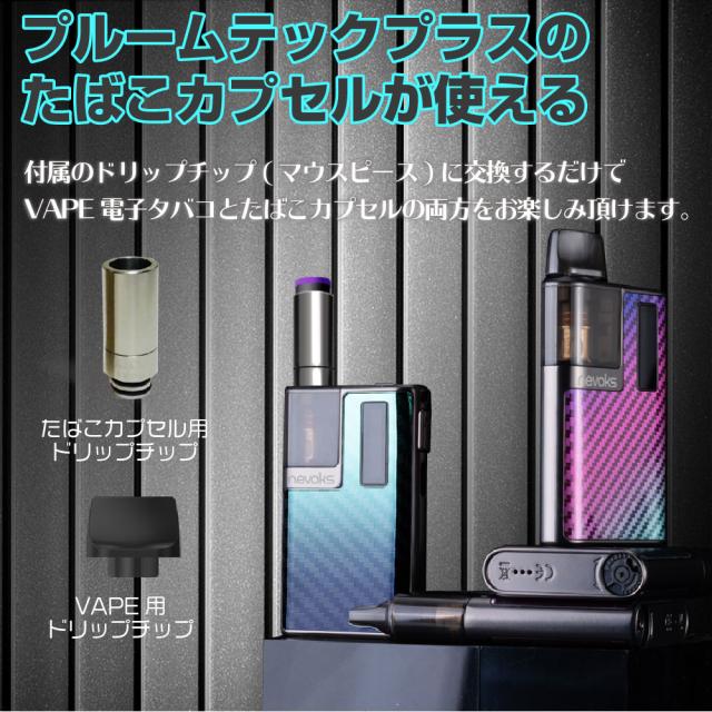 ドリップチップ(マウスピース)を交換するだけでVAPE ( ベイプ ) 電子タバコとたばこカプセルの両方をお楽しみ頂けます。
